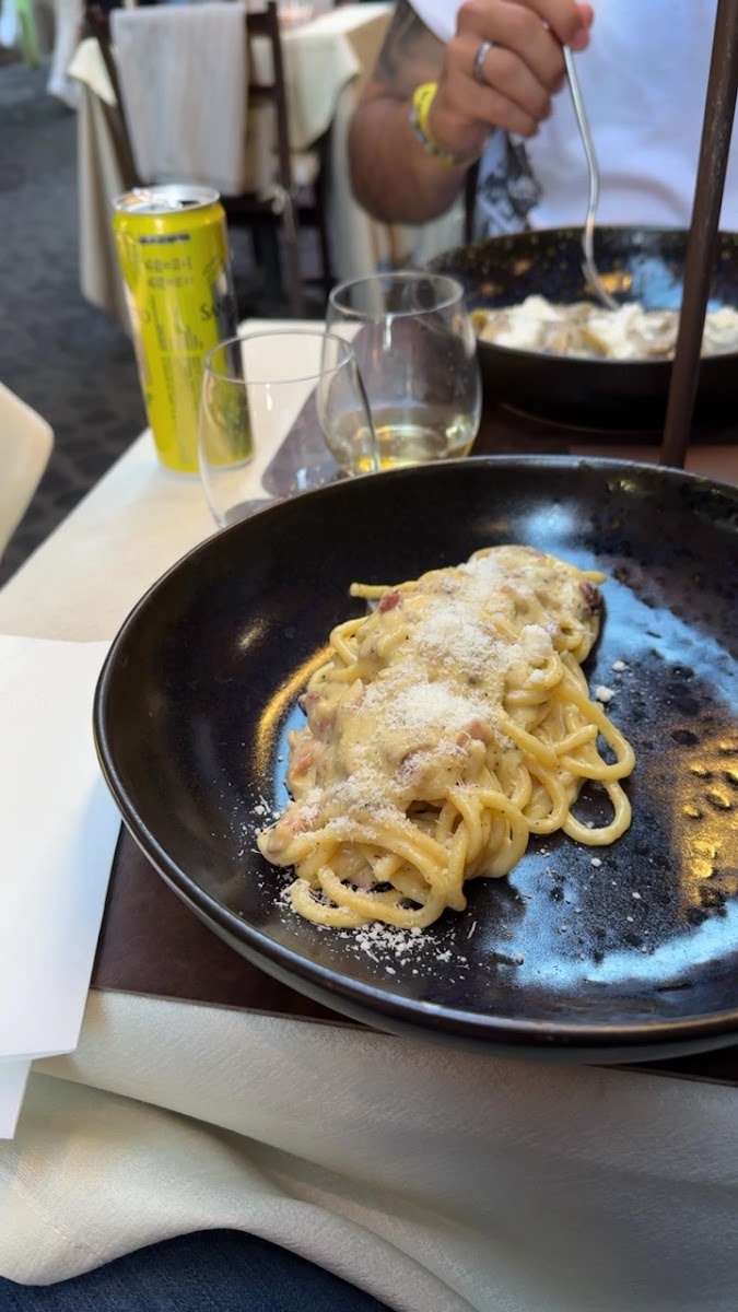 Amazing service. Food was really nice. Carbonara very good sauce. Not using guanciale though, which for the pice was a bit of a shame. Souffle was amazing. Very tourist friendly if you want quality.